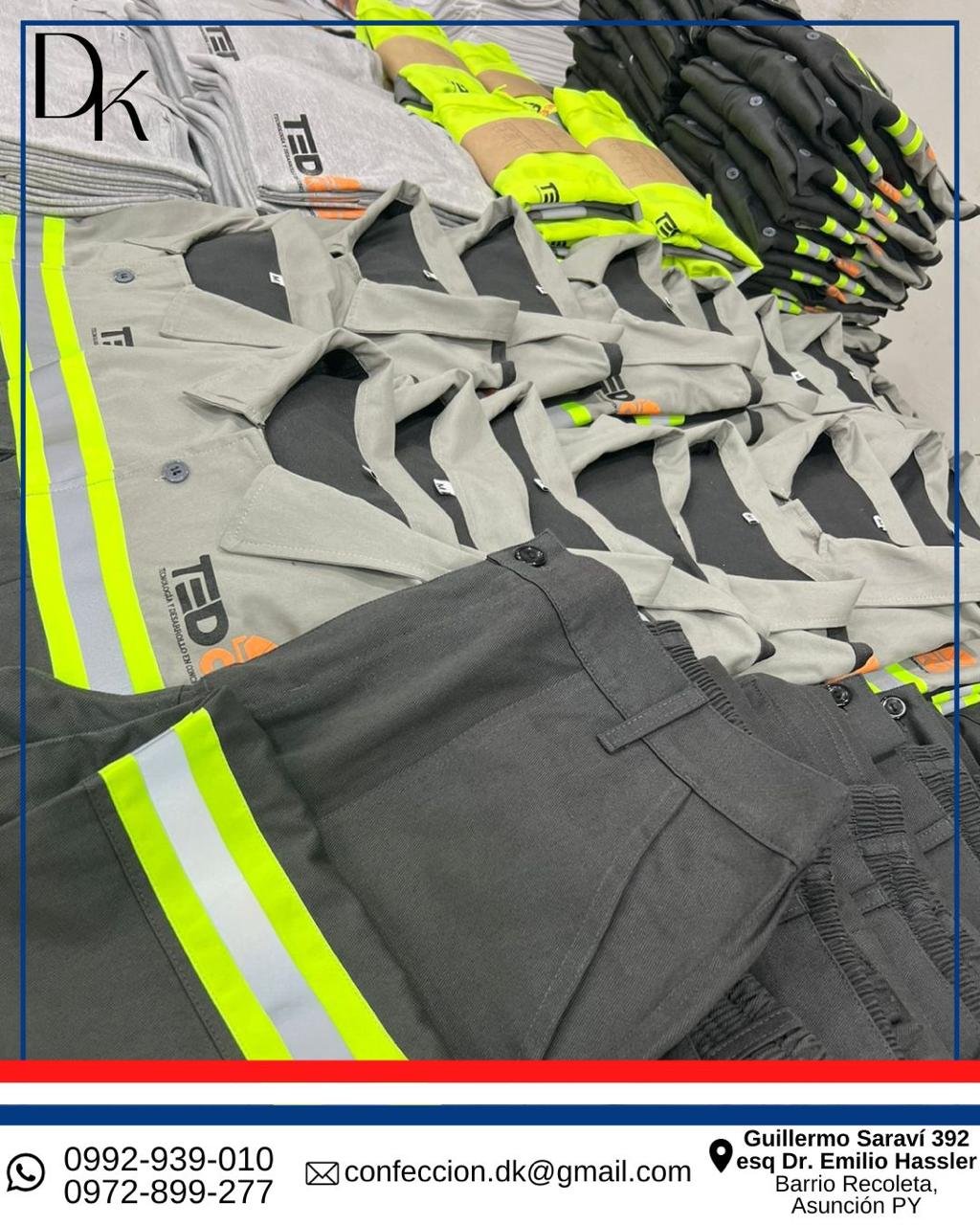 En el ámbito corporativo, la escala es tan importante como la calidad. En DK Uniformes, estamos equipados con la infraestructura y la tecnología necesarias para manejar proyectos de uniformidad de gran volumen con eficiencia y precisión. Nuestra fábrica no solo garantiza la calidad en cada costura, sino también la solvencia productiva que su empresa necesita.