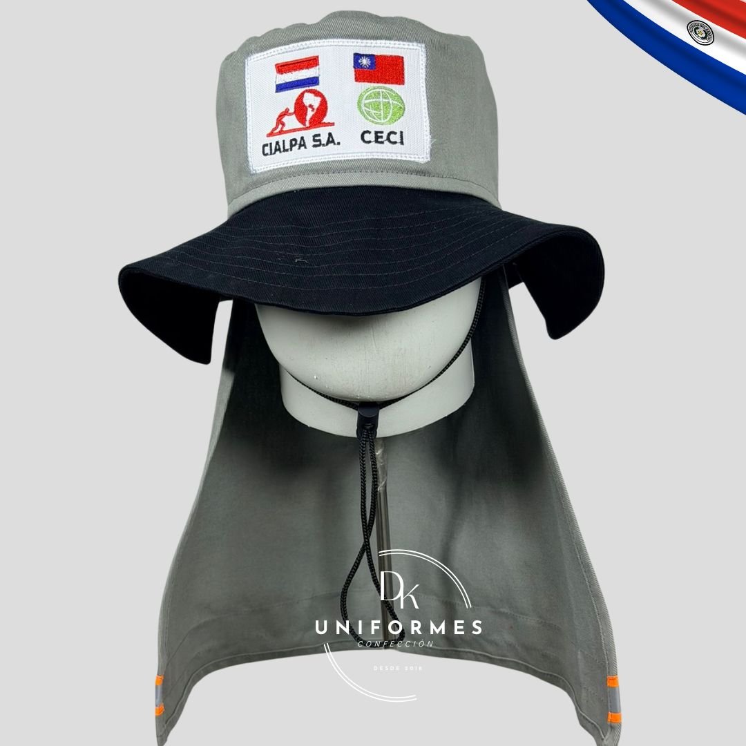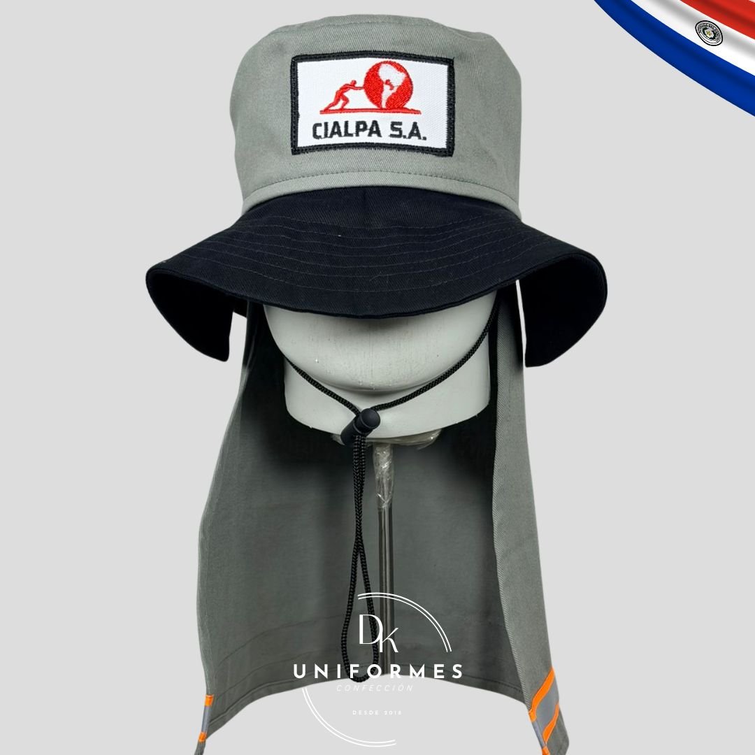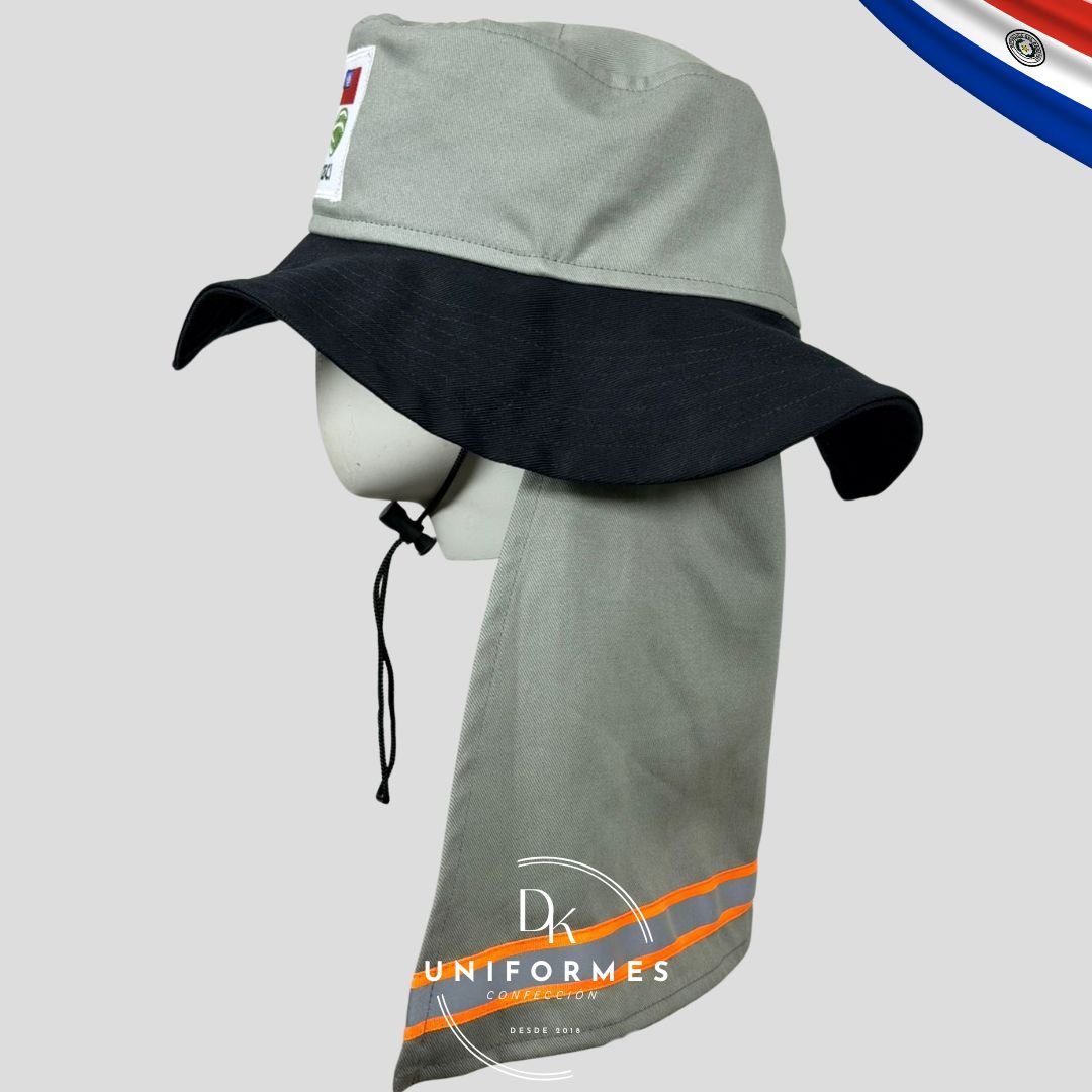 Nuestro sombrero de protección solar tipo legionaria es el accesorio indispensable para su equipo que desempeña labores al aire libre en Paraguay. Diseñado para ofrecer una cobertura total contra los dañinos rayos UV, protege eficazmente la cabeza, el rostro y la parte posterior del cuello, áreas críticas de exposición solar.